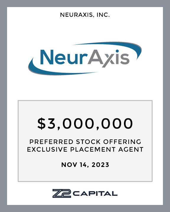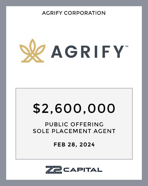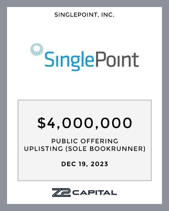 Z2 Capital, LLC, a division of and securities offered through Alexander Capital, L.P., Member FINRA, SIPC, MSRB. The information set forth on this site may contain proprietary information deemed to be reliable but not guaranteed and is legally privileged. No part of this website may be reproduced or transmitted in any form, electronically or mechanically, including by photocopy, recording, or any information storage and retrieval system, without permission in writing from the domain owner. The site has been designed for informational purposes only, and does not constitute an offer to sell or a solicitation or an offer to buy any security which may be referenced upon the site. Such offers can only be made where lawful under applicable law. Alexander Capital, L.P. does not intend to provide investment advice through this site and does not represent that the securities or services discussed are suitable for any investor. Summaries of information regarding registered agents and principals of Alexander Capital, L.P. and regarding the firm may be found at https://brokercheck.finra.org. Before investing, always read the prospectus and consult with your CPA and/or Financial Representative. Past performance is no guarantee of future results. Always consider the risks when investing. Consumers are encouraged to read the privacy policies using links from the Alexander Capital, L.P. website. Alexander Capital, L.P. does not offer tax or legal advice. Clearing Services are provided by RBC Clearing & Custody, a division of RBC Capital Markets, LLC.